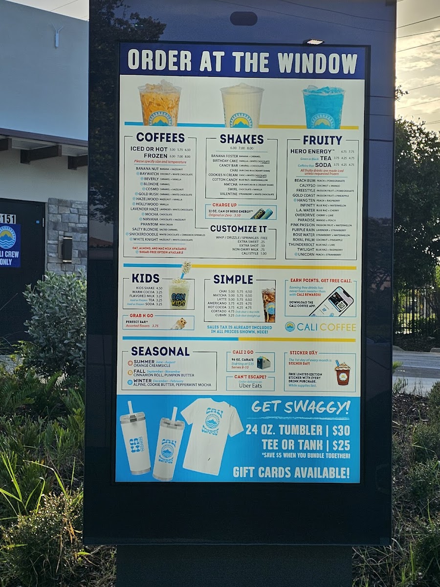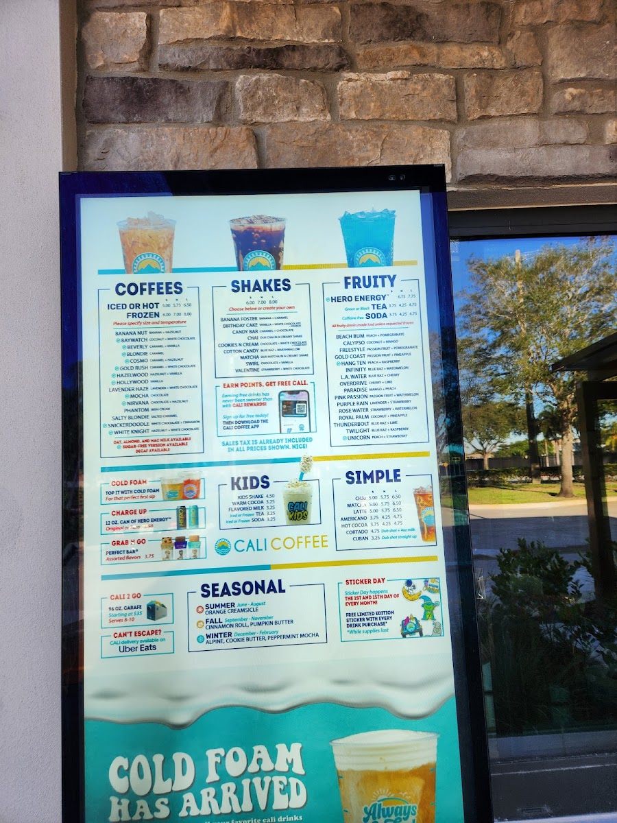 Cali Coffee Menu